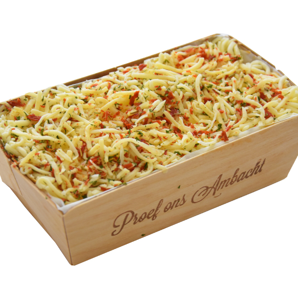 Mix van diverse verse vis, verse groenten, romige saus, kaas en kruiden. 20-25 min. 180°C per stuk